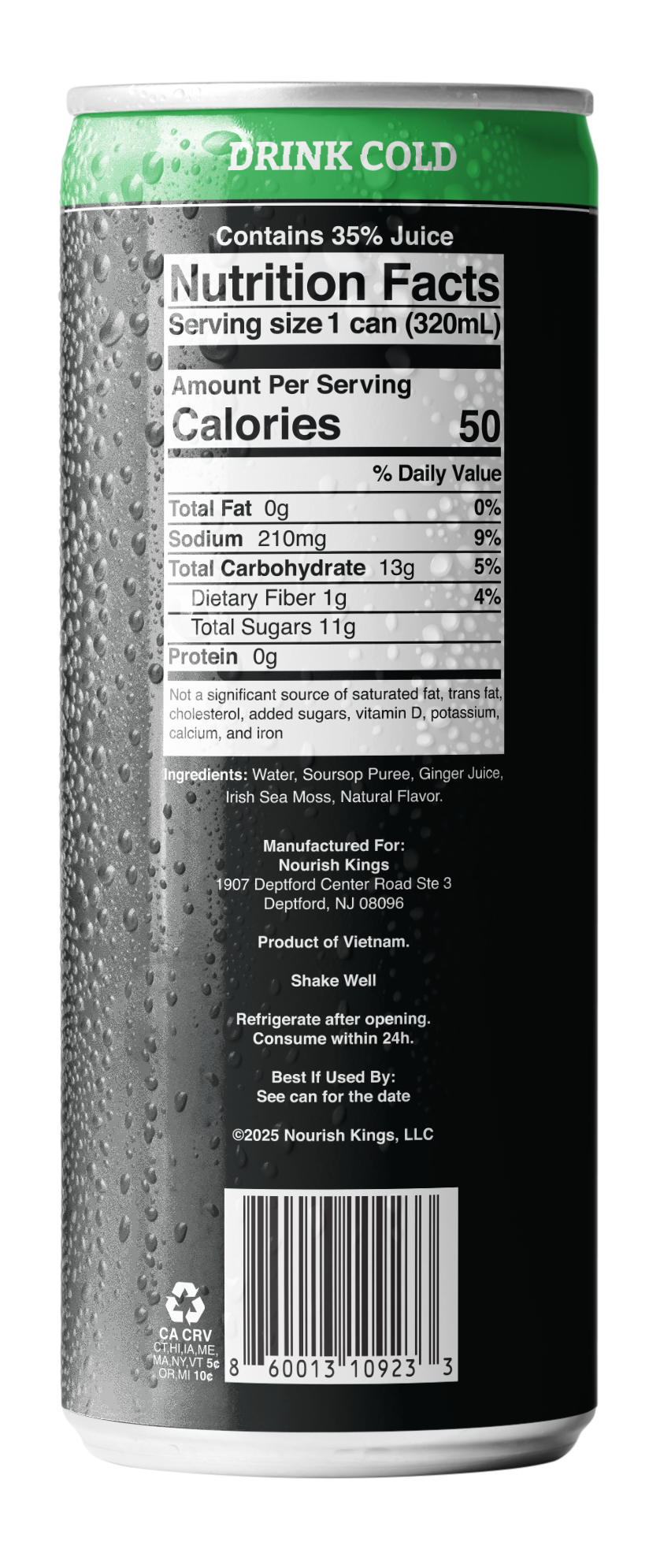 A refreshing blend of soursop and ginger with Irish Sea Moss. Best enjoyed cold. Shake well before drinking.